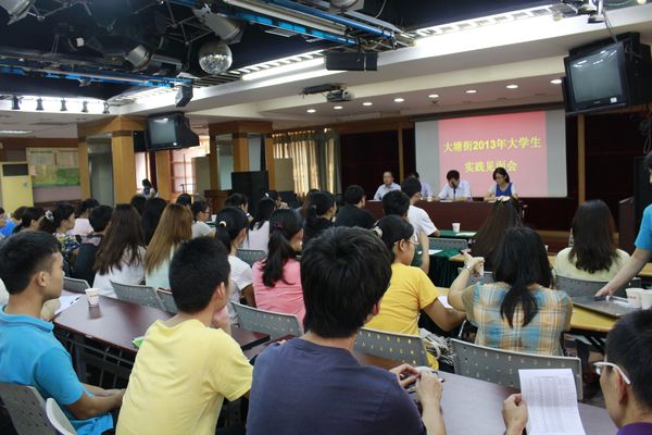 2013年8月2日,这是数院实践队在大塘办事处实践的最后一天。下午,大塘街道办事处的陈小茴和数学学院辅导员老师肖华峰博士以及两院参加实践学生一起参加了这次会议。