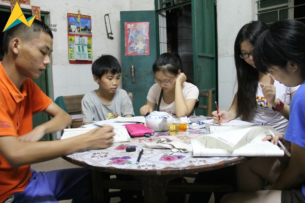 同学们辅导珊瑚村中小学生学习