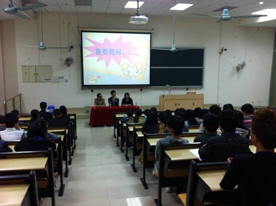 交流会开始,罗绍鹏同学介绍了自己在番禺支教时的具体情况。在支教过程中,他一共教了300多节课,获得了非常丰富的教学经验。虽然错过了很多找工作的机会,但他不后悔自己的选择。陈聪同学根据自己实习及找工作的经历,从师范技能到学习成绩到找工作的心态具体地向参会的同学介绍了如何成为一名优秀的人民教师。潘燕霞同学介绍了自己支教及找工作的经验,令同学们更加了解支教的乐趣与意义。之后,在提问环节中,同学们踊跃地提问,而嘉宾们则耐心细致地回答同学们的问题,现场气氛非常活跃。