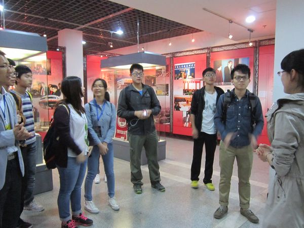 校史馆的解说员带领访学团来到校史馆的地下负2层,首先看到的是燕园的鸟瞰图,有六个标志性的建筑:博雅塔、西校门、校长楼、图书馆、百周年纪念讲堂、体育馆。展板一共有九个部分,一共长400多米,有400多件实物700多件照片。展览以北大“爱国、进步、民主、科学”的光荣革命传统和“勤奋、严谨、求实、创新”的优良学术传统为主线,根据时间顺序,解说员向我们一一介绍了北京大学的历史,让我们亲身感受到了北京大学悠久的历史和浓厚的文化底蕴。