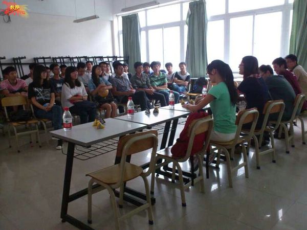 2013年10月8日下午两点,文新楼迎来了数学学院2013级新生学术交流会,此次交流会邀请了三十几位研究生以及大三、大四的同学,他们各自讲述了从大一走到现在的经历,并解答了新生们在某些问题上的疑惑,让新生们受益匪浅,2013级辅导员杜亚辉老师参加了此次学术交流会。