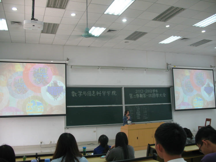 2012-2013学年度第二学期第一次团学大会在理南622顺利召开,学院党委副书记曾学毛老师、学院团委书记杜亚辉老师、团委副书记顾书老师以及团委学生会各部门成员出席本次大会。