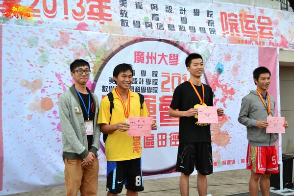 在这届运动会上,三个学院的运动员分别在短跑、长跑、铅球、跳高、接力赛等项目中展开激烈角逐。赛场上,运动健儿们激情飞扬,奋力拼搏,本着“友谊第一,比赛第二”的理念参加比赛,不畏困难,奋勇争先,挥洒汗水!数院的运动健儿们发挥出色,包揽了男子800米前七名、男子100米前三名等等,成绩斐然!