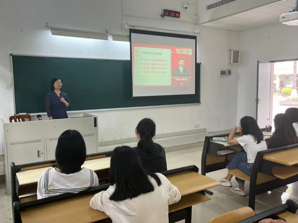 在课堂中,郑美玲书记围绕党的二十大报告的十五个部分和五个牢牢把握内容,引导同学们深刻认识到中共二十大是在全党全国各族人民迈上全面建设社会主义现代化国家新征程、向第二个百年奋斗目标进军的关键时刻召开的一次十分重要的大会,在党和国家发展历史上具有里程碑意义。