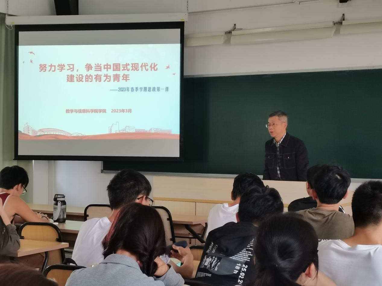 本学期的思政第一课如约而至,郑书记的一席话让我真正感受到奋斗、成就、理想的力量,认识到一代人有一代人的使命,一个时代有一个时代的担当。今年我校的数学学科建设进入ESI全球前1%,进入全新的发展阶段,新时代新机遇,成功的背后是无数人奋斗的背影。作为新时代的大学生,我们应该用于挑战,以青春之力谱写时代篇章,以不懈努力点亮时代理想,在奋斗的道路上唱响勇往直前的青春之歌。