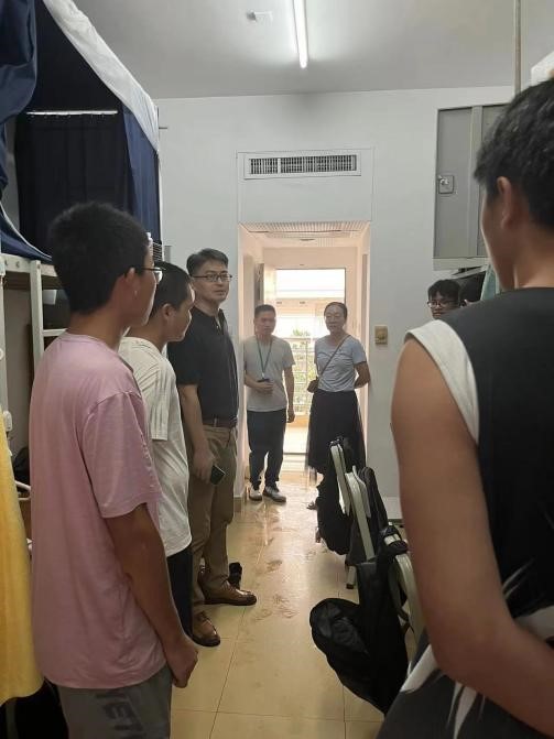 学生宿舍,亲切与同学们交谈。一方面鼓励同学们合理规划假期,劳逸结合;另一方面也提醒同学们做好宿舍防火防盗,提高防诈骗意识。