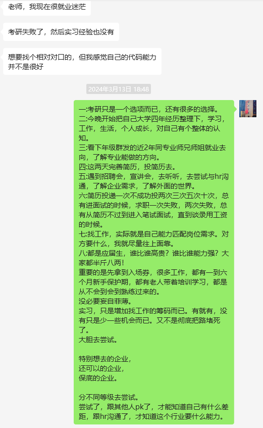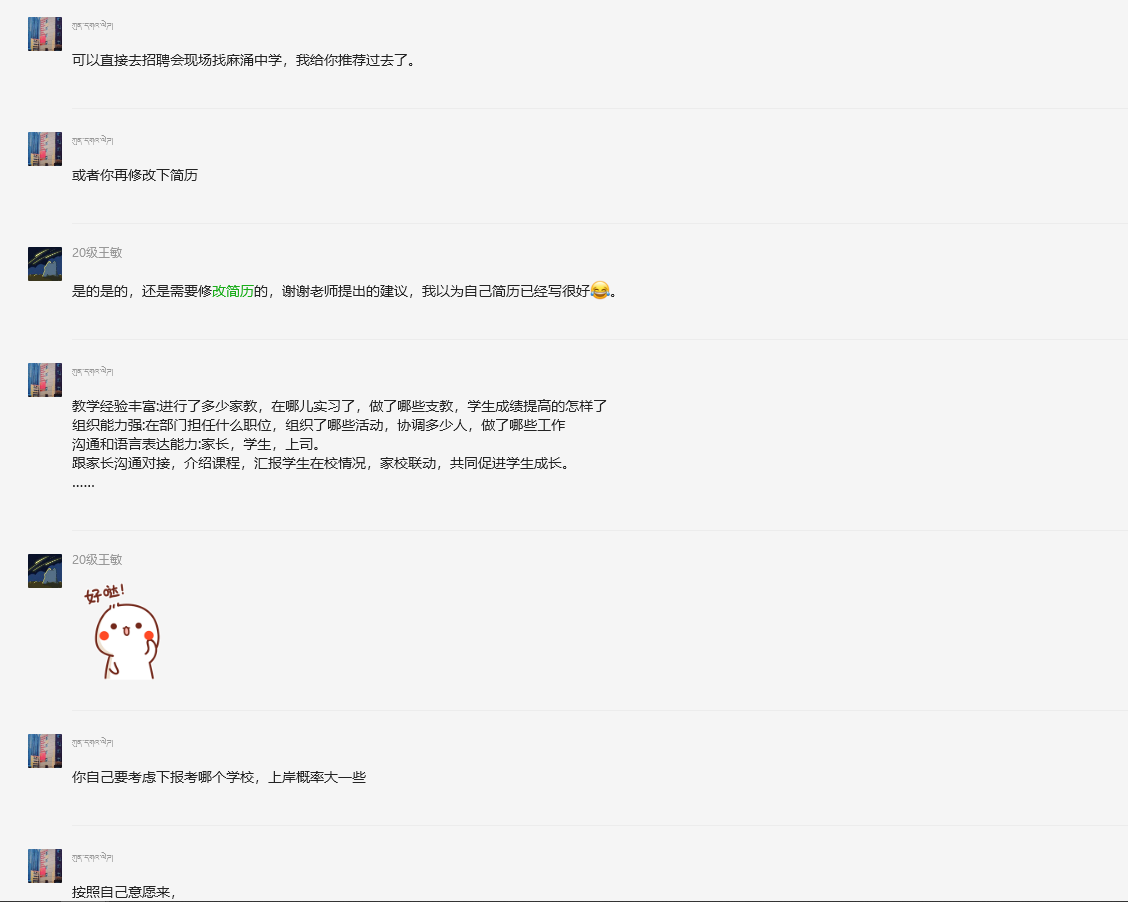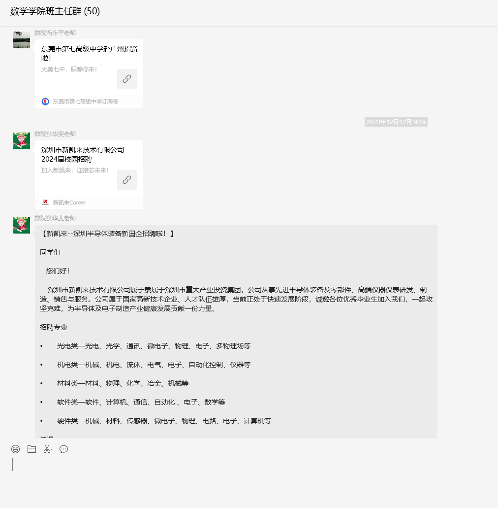 学院还实施了包括在年级就业委员群、家长群、班主任群、校友群内推等多渠道进行就业动员和系列就业帮扶措施,为毕业生提供更多就业机会和资源。这些措施的落地执行,拓宽了毕业生的就业信息渠道,有效地帮助毕业生顺利实现高质量就业。