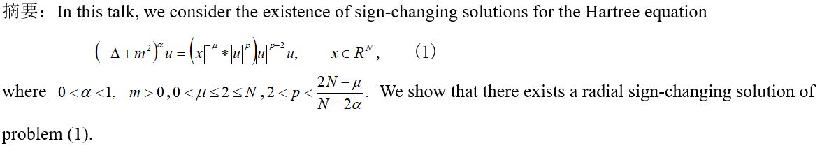 题目:The existence of sign-changing solutions for pseudo-relativistic Hartree equations.