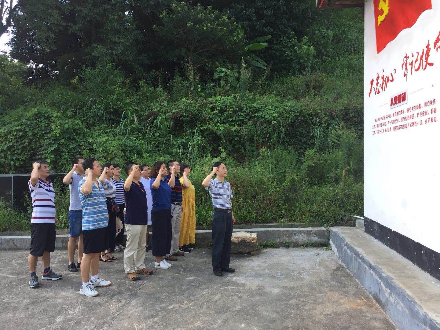 12日,我们党员教师一行十余人一大早驱车前往从化吕田莲麻村,深处从化与新丰交界的小山村巨大的变化让老师们眼前一亮,习近平总书记在党的十九大报告中明确提出实施乡村振兴战略,这是党中央着眼于全面建成小康社会、基本实现现代化、全面建设社会主义现代化国家作出的重大战略决策。广东先行先改,投入了二个亿打造的莲麻村休闲绿色小镇,让我们大开眼界羡慕不已……车转入林区,我们来到东江抗日纵队革命遗址,全体老师参观了“东江纵队从化大队活动基地”,看到用革命和民俗文物复原当时场景的“首届中共从化县委成立旧址”、“光裕第”客家围龙古村屋,大家深受感染和教育,感受到老一辈革命人士为革命、为新中国的解放事业不惜牺牲的大无畏精神,从而倍加珍惜当代的和平岁月和幸福生活,全体党员面向党旗重温入党誓词,不忘初心、牢记使命!