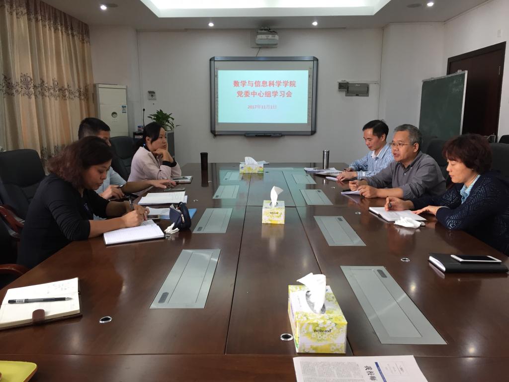 11月1日,院长曹道民教授、院党委书记黄志凯及其他院领导、各党支部书记率先组织进行了学习党的十九大精神的体会交流。会上曹道民院长发言表达了自己学习十九大报告的感想和体会,他说:总书记在报告中一直强调人才的重要性,自己来到数学学院工作也深感引进人才和培养人才是学院发展建设的第一要务,因此会好好领会报告精神,把握学校发展的大好机遇,与班子一起为学院谋发展抓好高水平大学建设。会上黄书记强调各位中心组成员要带头加强自身建设,当好表率,以上率下,坚决维护以习近平同志为核心的党中央权威和集中统一领导,以习近平新时代中国特色社会主义思想为指引,牢牢把握新时代的新特征,为学校“高水平大学”建设添砖加瓦。