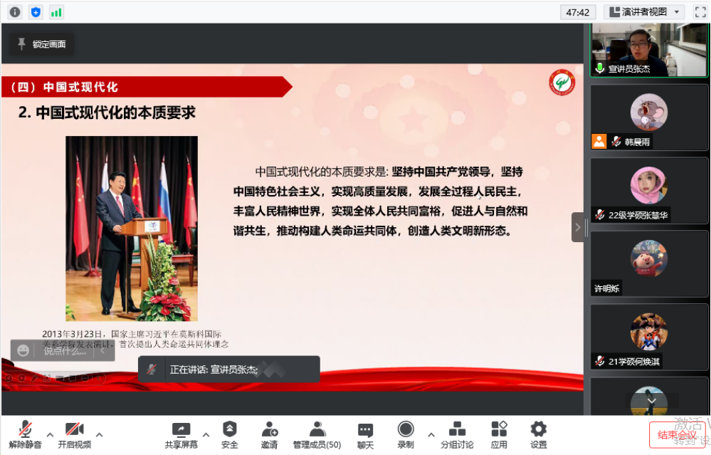 博士生党支部的王绍红、张杰和秦子雁同志以线上会议的形式分别对博士生党支部、研究生第一党支部和研究生第二党支部进行了宣讲。