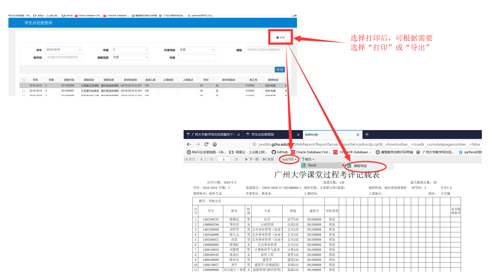 因学籍异动,重修等原因,教师查询打印实际上课的学生名单会有小范围内的变化。