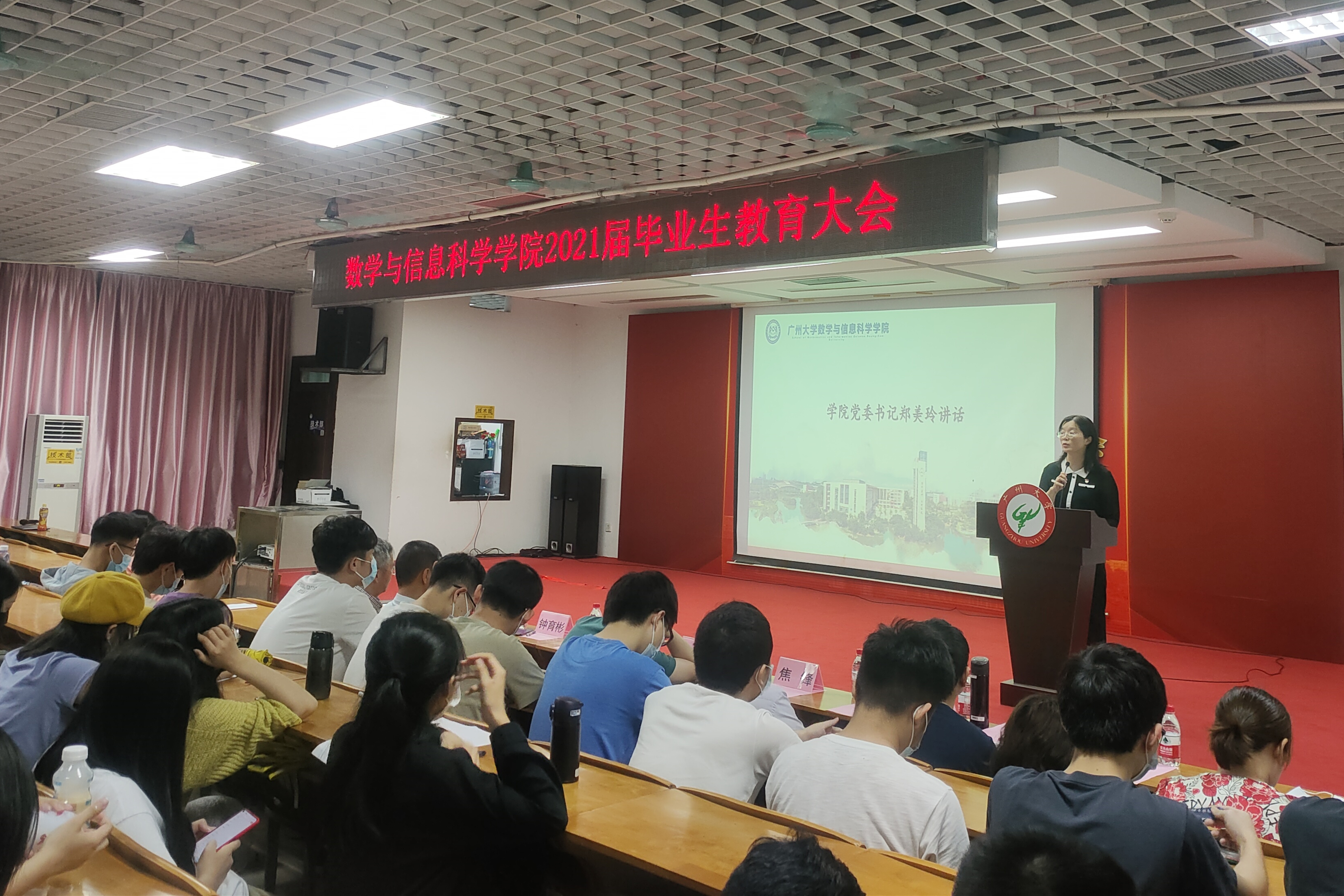 3月18日下午,数学学院召开2021届毕业生教育大会。院长彭济根教授,学院党委书记郑美玲,副院长王晓峰教授、钟育彬教授、蒲学科教授、焦峰副教授,学院党委副书记杨春荣,毕业班班主任、全体辅导员、科研办和教务办相关负责老师,以及全体毕业生近400人参加大会。