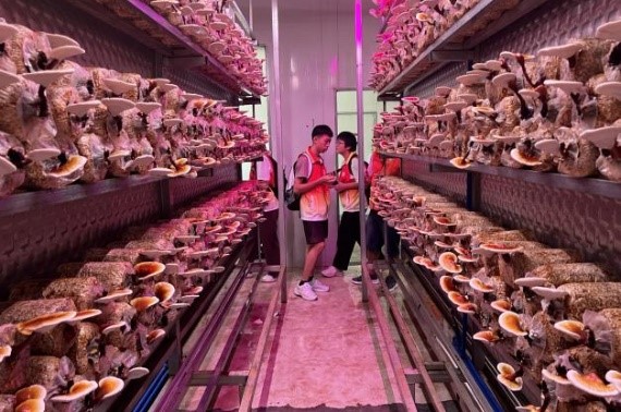 来到基地后,第一站是灵芝文化馆,同学们参加了灵芝食用菌科普大讲堂,认识了灵芝的培养过程,了解了人工智能气候室灵芝种植技术,亲眼见证了灵芝喷出孢子粉的过程。