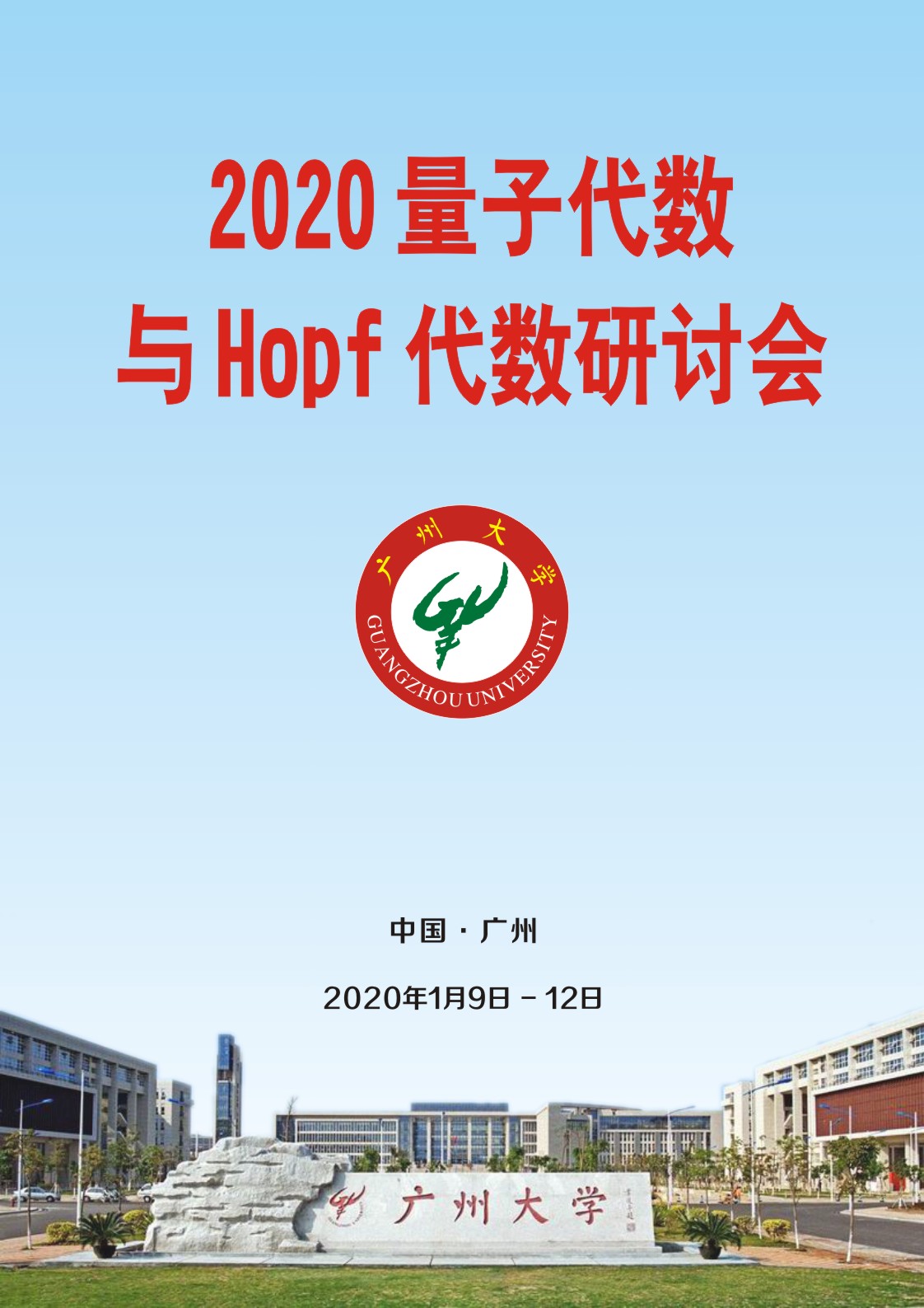 “2020 量子代数与Hopf代数研讨会”将于2020年1月9日至1月12日在禁漫天堂